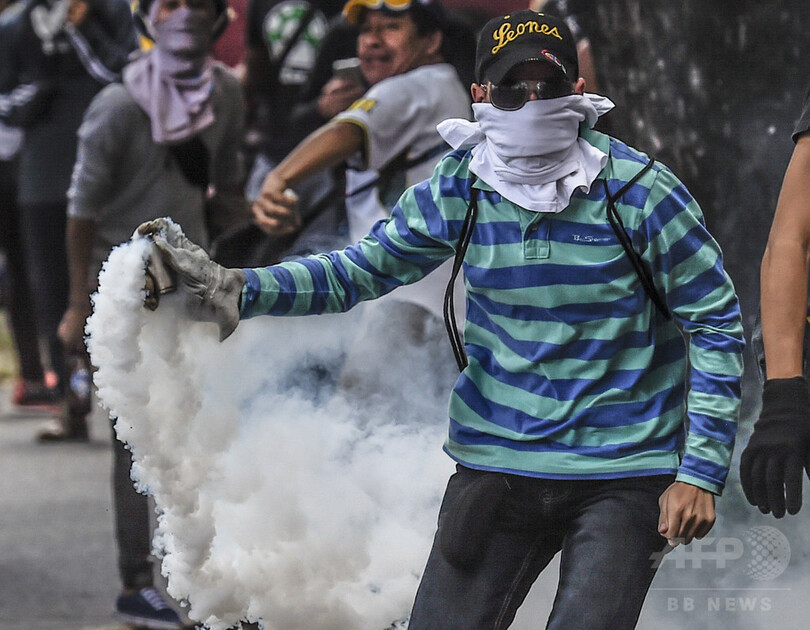 約2か月間に及んでいる反政府デモでは、デモの参加者たちと警官隊との衝突などでこれまでに64人の死者が出ている。マドゥロ政権は大きく揺れており、国際社会は懸念を示している。(c)AFP/Alex VASQUEZ