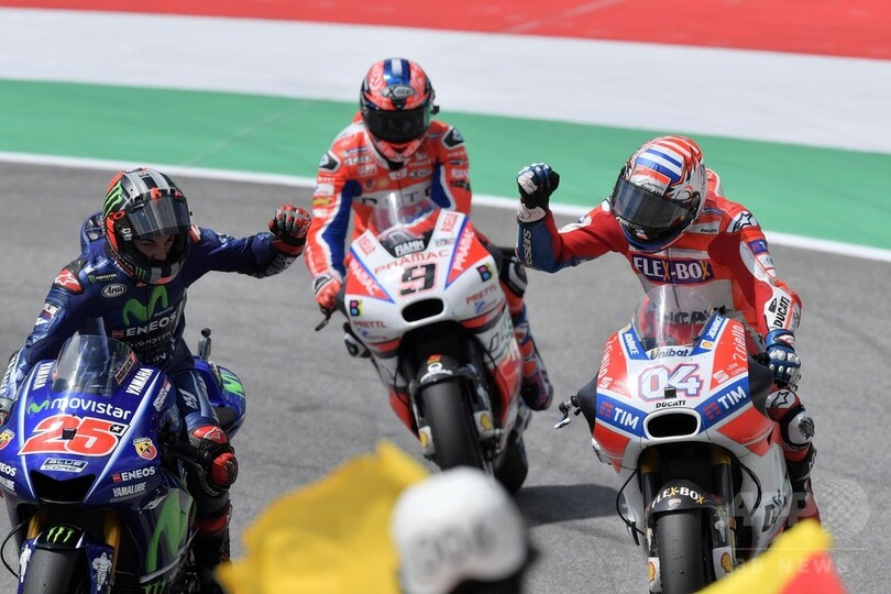 【6月5日 AFP】世界ロードレース選手権(WGP 2017)第6戦のイタリアGPは4日、ムジェロ・サーキット(Mugello Circuit)でMotoGPクラスの決勝が行われ、ドゥカティ(Ducati Team)のアンドレア・ドビツィオーゾ(Andrea Dovizioso)が総合首位でモビスター・ヤマハ(Movistar Yamaha)のマーベリック・ビニャーレス(Maverick Vinales、スペイン)を抑え、母国イタリアで優勝を飾った。