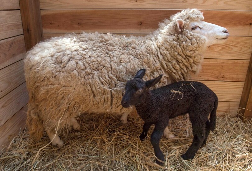 白いヒツジから黒い赤ちゃん生まれる、千葉市動物公園
