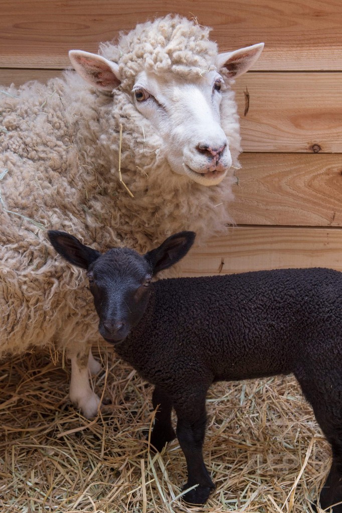 白いヒツジから黒い赤ちゃん生まれる、千葉市動物公園