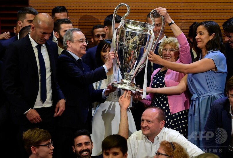 レアルはここ4年間で3度目のチャンピオンズリーグ制覇を達成しており、ヨーロッパチャンピオンズカップ(European Cup、欧州CLの前身)で初代王者となってから5季連続でタイトルを獲得した1955年から1960年の最強レアルと比肩する強さをみせている。(c)AFP/Diego URDANETA, Kieran CANNING