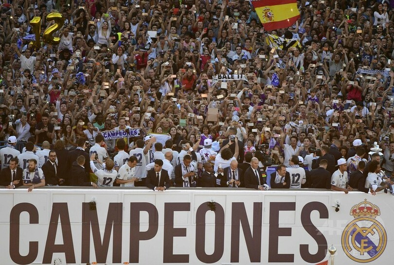 王者レアルが優勝パレード、会長は選手らを「レジェンド」と称賛