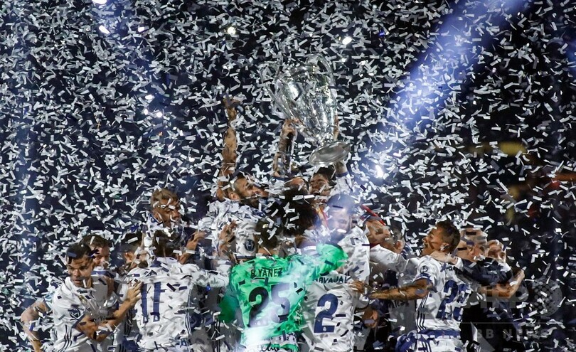 レアルはここ4年間で3度目のチャンピオンズリーグ制覇を達成しており、ヨーロッパチャンピオンズカップ(European Cup、欧州CLの前身)で初代王者となってから5季連続でタイトルを獲得した1955年から1960年の最強レアルと比肩する強さをみせている。(c)AFP/Diego URDANETA, Kieran CANNING