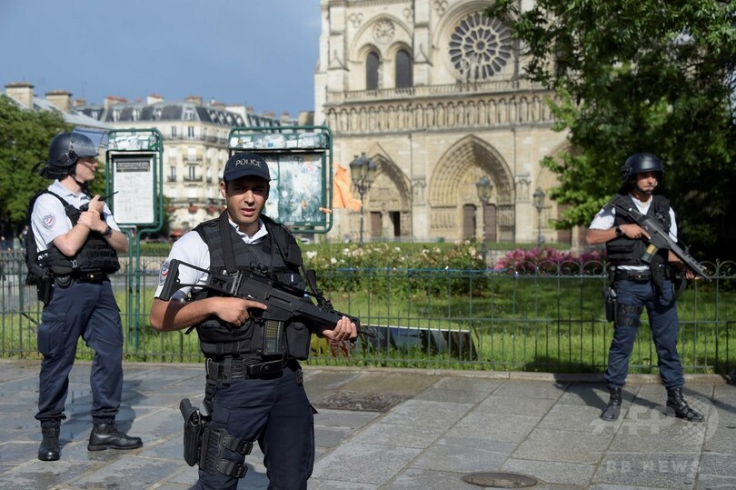 事件を受け、フランスでも有数の観光地である大聖堂周辺は一時パニック状態に陥った。 捜査筋によると、襲撃を受けた警官は首に軽傷を負った。男はその後、自分はイスラム過激派組織「イスラム国(IS)」の「兵士」だと主張したという。