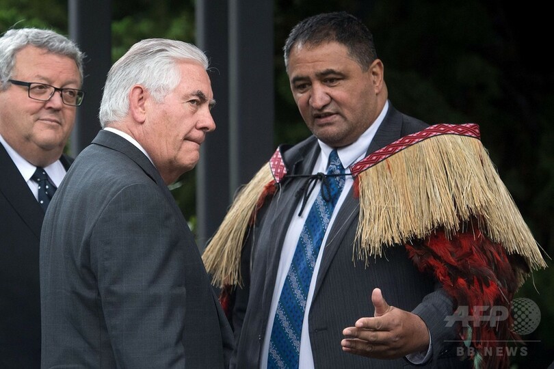 【6月7日 AFP】レックス・ティラーソン(Rex Tillerson)米国務長官は6日、ニュージーランドを訪問し、首都ウェリントン(Wellington)の首相府で先住民マオリ(Maori)の長老に伝統のあいさつ「ホンギ(Hongi)」で迎えられた。