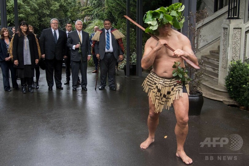 【6月7日 AFP】レックス・ティラーソン(Rex Tillerson)米国務長官は6日、ニュージーランドを訪問し、首都ウェリントン(Wellington)の首相府で先住民マオリ(Maori)の長老に伝統のあいさつ「ホンギ(Hongi)」で迎えられた。