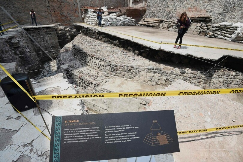 【6月8日 AFP】メキシコの首都メキシコ市(Mexico City)中心部で、古代アステカの風神を祭っていたとみられる巨大寺院と球技場の遺跡が発見され、発掘に当たった考古学者らが7日、報道陣に公開した。