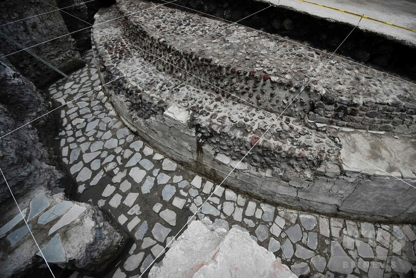 これらの古代遺跡は、かつてアステカの首都テノチティトラン(Tenochtitlan)があった歴史的都市の中心で発見された最も新しいもので、この場所には以前ホテルがあったが、1985年の地震で崩壊した。(c)AFP