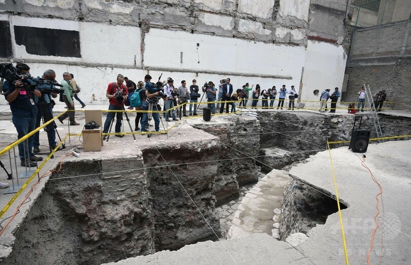【6月8日 AFP】メキシコの首都メキシコ市(Mexico City)中心部で、古代アステカの風神を祭っていたとみられる巨大寺院と球技場の遺跡が発見され、発掘に当たった考古学者らが7日、報道陣に公開した。