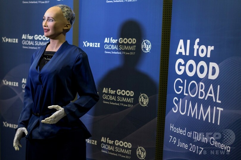 ハンソン・ロボティクス(Hanson Robotics)社が制作したこの人型ロボットは、スイス・ジュネーブ(Geneva)で開催中の、人工知能(AI)を人間にどう役立たせるかをテーマにした国連主催の会議の目玉となっている。
