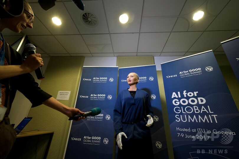 ハンソン・ロボティクス(Hanson Robotics)社が制作したこの人型ロボットは、スイス・ジュネーブ(Geneva)で開催中の、人工知能(AI)を人間にどう役立たせるかをテーマにした国連主催の会議の目玉となっている。