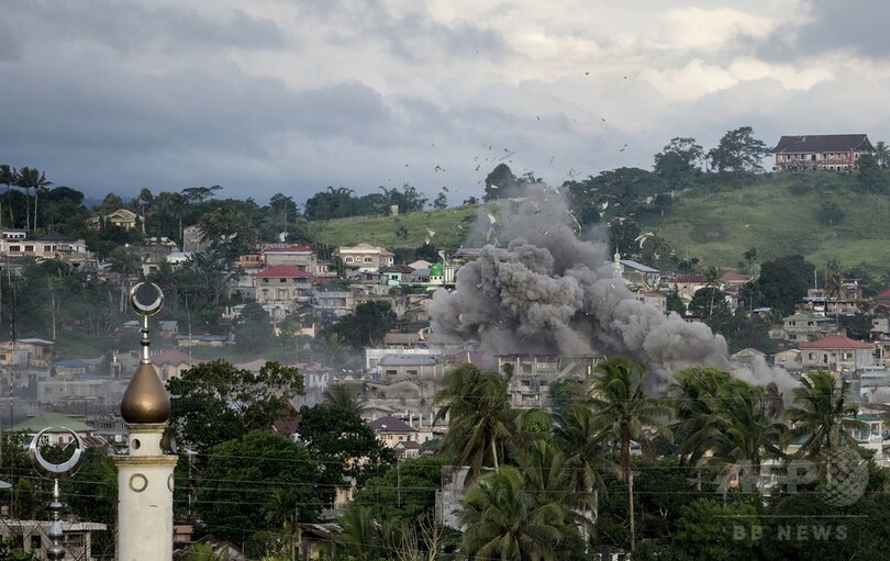 イスラム教徒が大多数を占めるマラウィを先月23日に襲撃してイスラム過激派組織「イスラム国(IS)」の黒い旗を掲げ、住民を人間の盾にして防空トンネルや対戦車兵器を使用する数百人の戦闘員に対し、フィリピン軍は苦戦を強いられている。