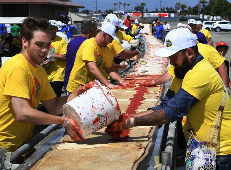 「世界一長いピザ」でギネス記録 カリフォルニア