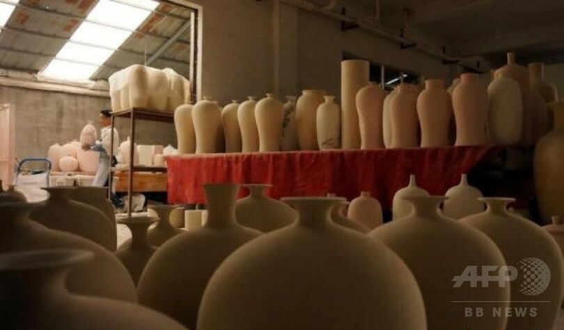 粘土から磁器になるまでの、景徳鎮1000年の陶芸の手法は、決して大きいとはいえないこの工房にも濃縮されている。景徳鎮にはこうした工房が数多くあり、陶磁器文化の魂が今も深く根づいている。ろくろ、絵付け、釉(ゆう)薬や窯は様々だが、職人たちは伝統を守り、そして伝承し、1000年に及ぶ窯の火は燃え続けている。(c)CNS/JCM/AFPBB News