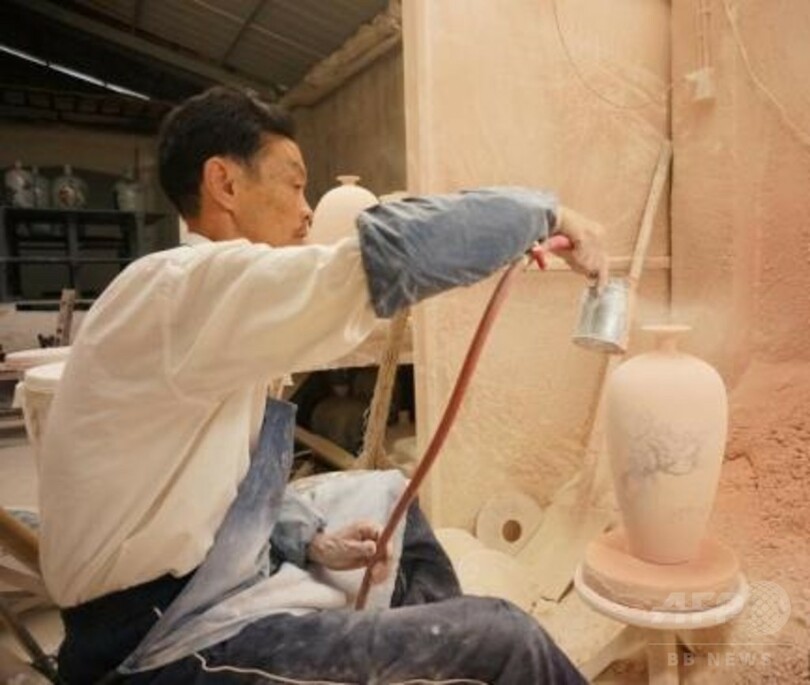 粘土から磁器になるまでの、景徳鎮1000年の陶芸の手法は、決して大きいとはいえないこの工房にも濃縮されている。景徳鎮にはこうした工房が数多くあり、陶磁器文化の魂が今も深く根づいている。ろくろ、絵付け、釉(ゆう)薬や窯は様々だが、職人たちは伝統を守り、そして伝承し、1000年に及ぶ窯の火は燃え続けている。(c)CNS/JCM/AFPBB News