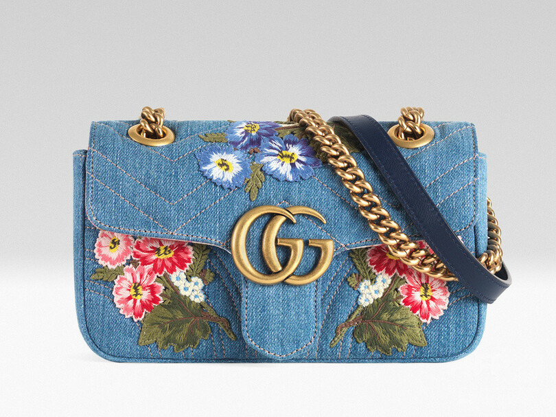 クリエイティブ・ディレクターのアレッサンドロ・ミケーレ(Alessandro Michele)がデザインする、アイコニックなレザーグッズ コレクション「GGマーモント」は、ダブルGのハードウェアと“シェブロン キルティング”と呼ばれるキルティング素材がポイント。今回発売される限定コレクションでは日本製の高品質デニムを使用。原料となる綿花の栽培から紡績、藍染め、加工までを日本の伝統的製法で行い、ウォッシュ加工をイタリアの熟練した職人が手掛けたことで、独特な風合いと色合いを作り出した。耐久性が高く、汚れや水にも強い特性も兼ね備えている。さらに自然の世界をインスピレーションとしているアレッサンドロ・ミケーレならではの観点から、フラワーモチーフにフィーチャー。濃淡のピンクで描かれたローズの花々が、ハンドバッグやウォレットを彩る。