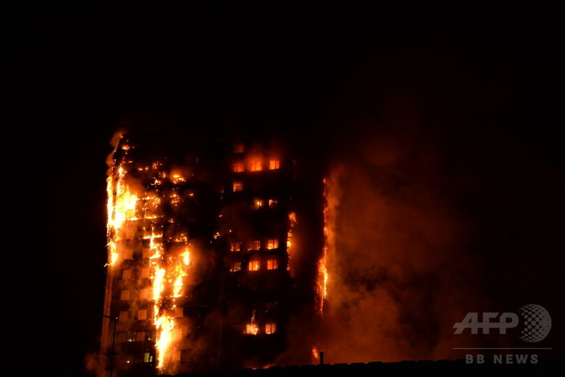 【6月14日 AFP】(更新、写真追加)英ロンドン(London)西部の24階建て高層住宅で14日未明、大規模な火災が発生し、ロンドン市消防局(London Fire Brigade)は、複数の死者が出ていると発表した。また、救急当局によると少なくとも30人が病院に搬送され、複数の住民が建物内に取り残されているとみられる。