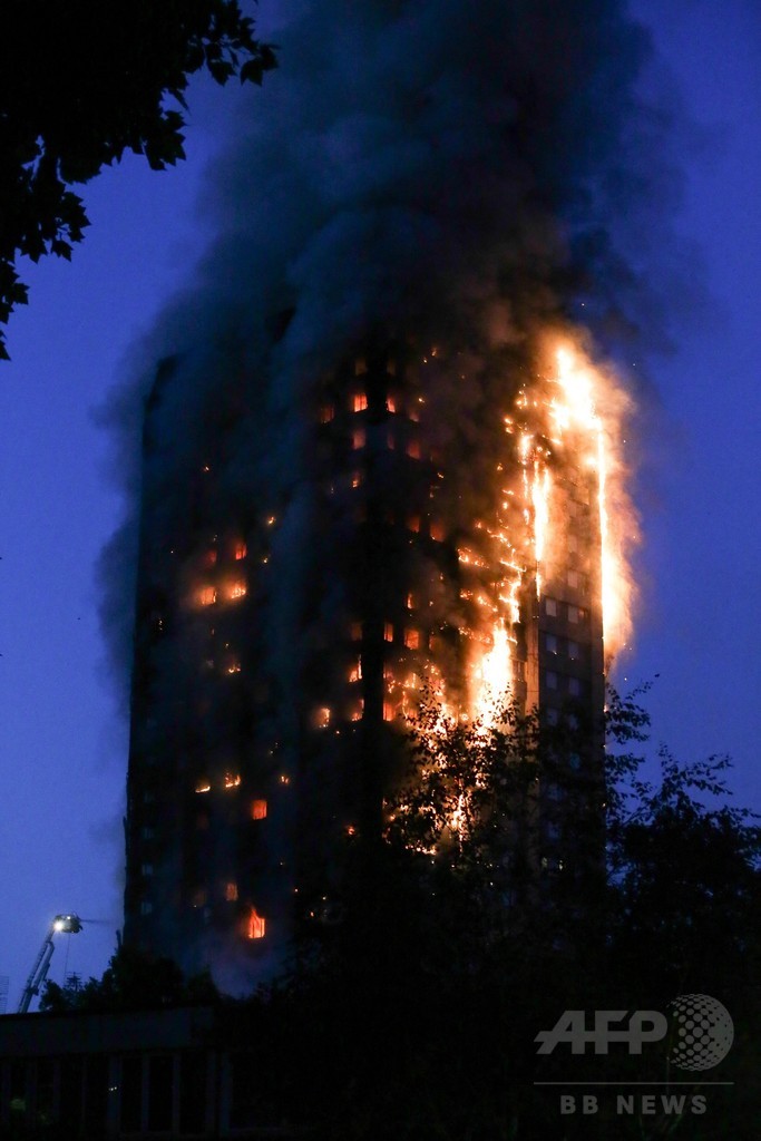 【6月14日 AFP】(更新、写真追加)英ロンドン(London)西部の24階建て高層住宅で14日未明、大規模な火災が発生し、ロンドン市消防局(London Fire Brigade)は、複数の死者が出ていると発表した。また、救急当局によると少なくとも30人が病院に搬送され、複数の住民が建物内に取り残されているとみられる。