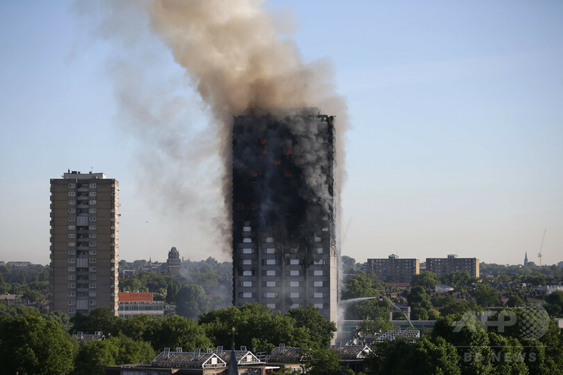 【6月14日 AFP】(更新、写真追加)英ロンドン(London)西部の24階建て高層住宅で14日未明、大規模な火災が発生し、ロンドン市消防局(London Fire Brigade)は、複数の死者が出ていると発表した。また、救急当局によると少なくとも30人が病院に搬送され、複数の住民が建物内に取り残されているとみられる。