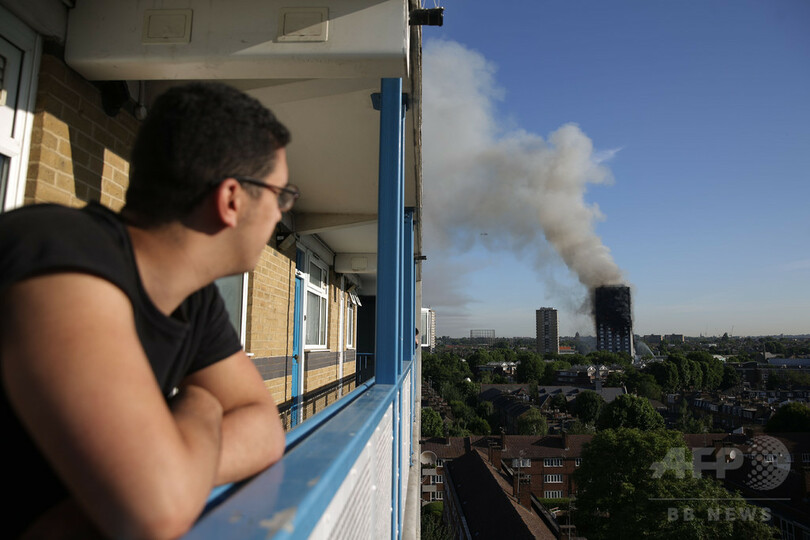 目撃者の男性は英BBCに対し、「彼らは閉じ込められた。階下に降りることができなかった。特に最上階からは…人々は焼かれていた」「人々が飛び降りるのも見た」と語っている。(c)AFP