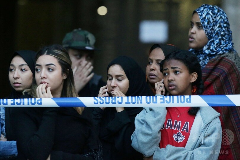 目撃者の男性は英BBCに対し、「彼らは閉じ込められた。階下に降りることができなかった。特に最上階からは…人々は焼かれていた」「人々が飛び降りるのも見た」と語っている。(c)AFP