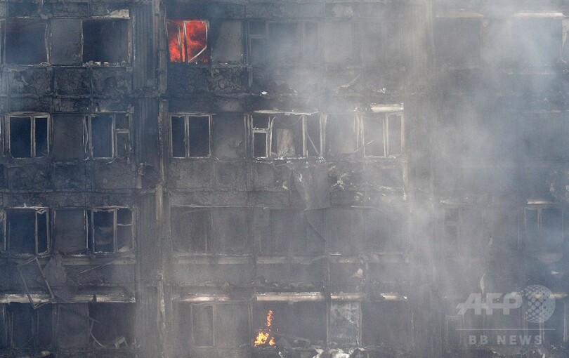 【6月14日 AFP】(写真追加)英ロンドン(London)西部の24階建て高層住宅で14日未明、大規模な火災が発生した。ロンドン市消防局(London Fire Brigade)によると、複数の死者が出ているという。また現在も、消防隊が鎮火に当たっている。(c)AFP
