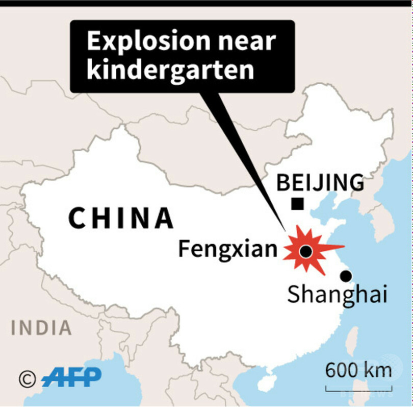 新華社通信は、爆発は園児らの退園中に起きたと伝えているが、豊県当局は、同園では当時授業が行われており、犠牲者の中に教諭や園児は含まれていないとしている。(c)AFP/Laurent THOMET
