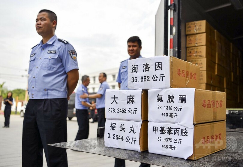 押収した麻薬は、ヘロイン54.41キロ、エフェドリン67.33キロ、およびエフェドリン錠剤1.28キロ、マリファナ1056.66キロ、マリファナの葉3.81キロ、カフェイン9.35キロ、ケタミン28.22キロ、MDMA(エクスタシー)0.26キロ。(c)CNS/JCM/AFPBB News