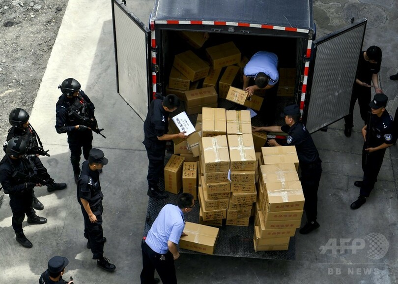 押収した麻薬は、ヘロイン54.41キロ、エフェドリン67.33キロ、およびエフェドリン錠剤1.28キロ、マリファナ1056.66キロ、マリファナの葉3.81キロ、カフェイン9.35キロ、ケタミン28.22キロ、MDMA(エクスタシー)0.26キロ。(c)CNS/JCM/AFPBB News