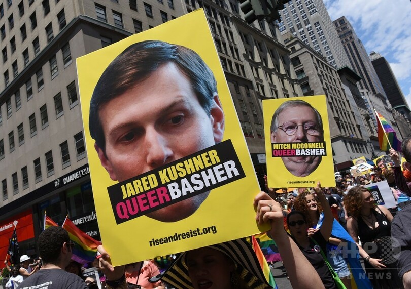 【6月26日 AFP】「ゲイ・プライド(Gay Pride)」のパレードが25日、米ニューヨーク(New York)で行われ、参加者数万人が市内を練り歩いた。このLGBT(レズビアン、ゲイ、バイセクシュアル、トランスジェンダー)の祭典では、7色の旗を誇らしげに振る人や、ドナルド・トランプ(Donald Trump)米大統領に抗議するプラカードを掲げた人も多数見られた。