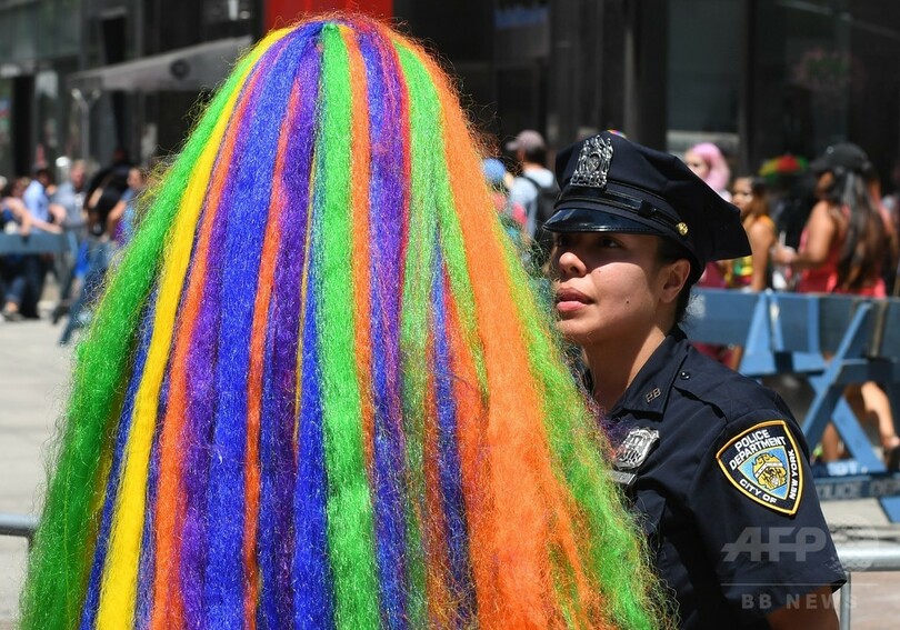 【6月26日 AFP】「ゲイ・プライド(Gay Pride)」のパレードが25日、米ニューヨーク(New York)で行われ、参加者数万人が市内を練り歩いた。このLGBT(レズビアン、ゲイ、バイセクシュアル、トランスジェンダー)の祭典では、7色の旗を誇らしげに振る人や、ドナルド・トランプ(Donald Trump)米大統領に抗議するプラカードを掲げた人も多数見られた。