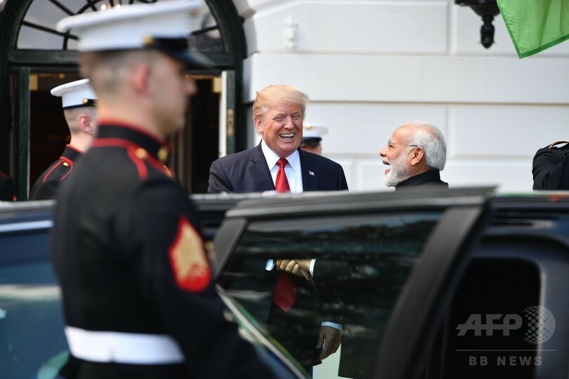 【6月27日 AFP】米国のドナルド・トランプ(Donald Trump)大統領とインドのナレンドラ・モディ(Narendra Modi)首相は26日、米ホワイトハウス(White House)で初の首脳会談を行った。直後の記者会見では、報道陣の前で何度も抱き合うなど「ブロマンス」(ブラザーとロマンスをかけた造語)と言える親密ぶりをアピールした。