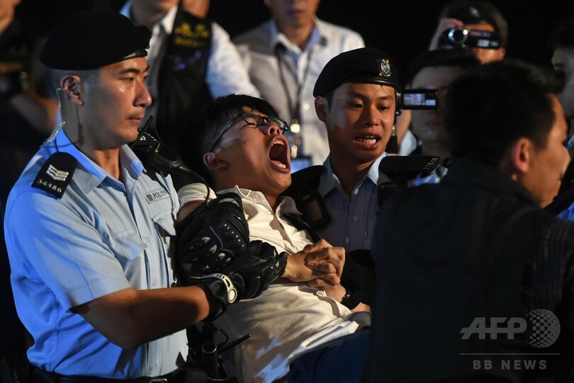 【6月29日 AFP】香港(Hong Kong)の選挙制度の民主化を求めた2014年の大規模デモ「雨傘運動(Umbrella Movement)」の学生指導者の一人だった黄之鋒(ジョシュア・ウォン、Joshua Wong)氏が28日、香港を象徴する像の前で反中デモを行い、警察に身柄を拘束された。香港は返還20年を記念し、中国の習近平(Xi Jinping)国家主席の訪問を控えている。