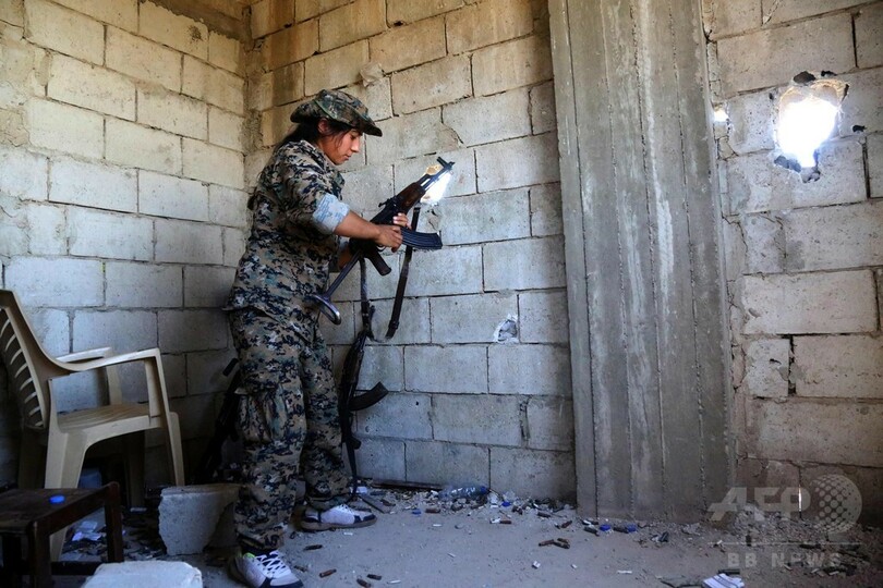 クルド人とアラブ人の合同部隊「シリア民主軍(SDF)」は数か月にわたってラッカ包囲作戦を進めてきた後、6月6日に同市内に進攻し、これまでに4分の1を制圧している。 (c)AFP