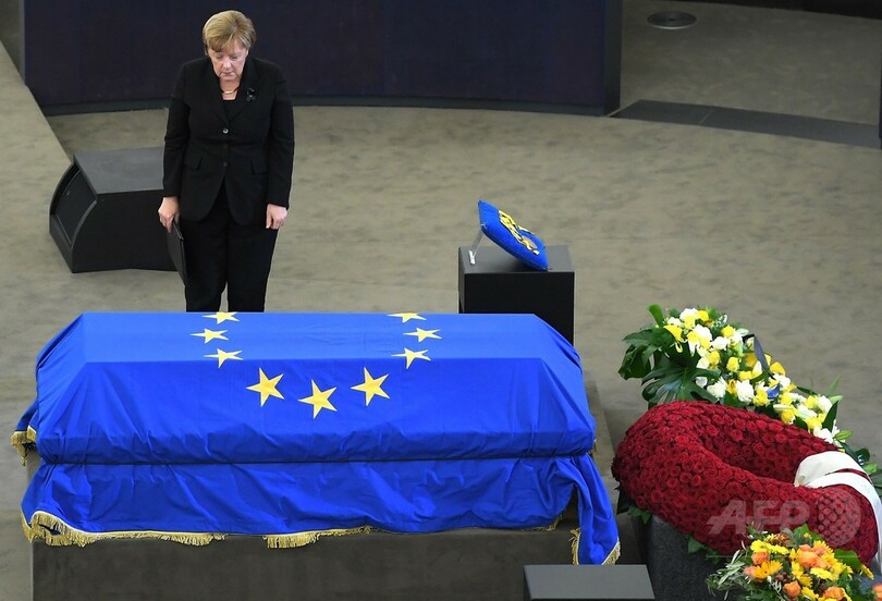欧州議会でコール元独首相の葬儀 「戦後史の巨人」をしのぶ