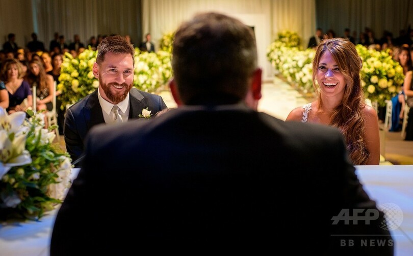 【7月2日 AFP】サッカーアルゼンチン代表のリオネル・メッシ(Lionel Messi)が先月30日、長年のパートナーであるアントネラ(Antonella Roccuzzo)さんと故郷ロサリオ(Rosario)で結婚式を挙げた。メッシの公式ホームページでは、結婚式での未公開写真が発表されている。(c)AFP