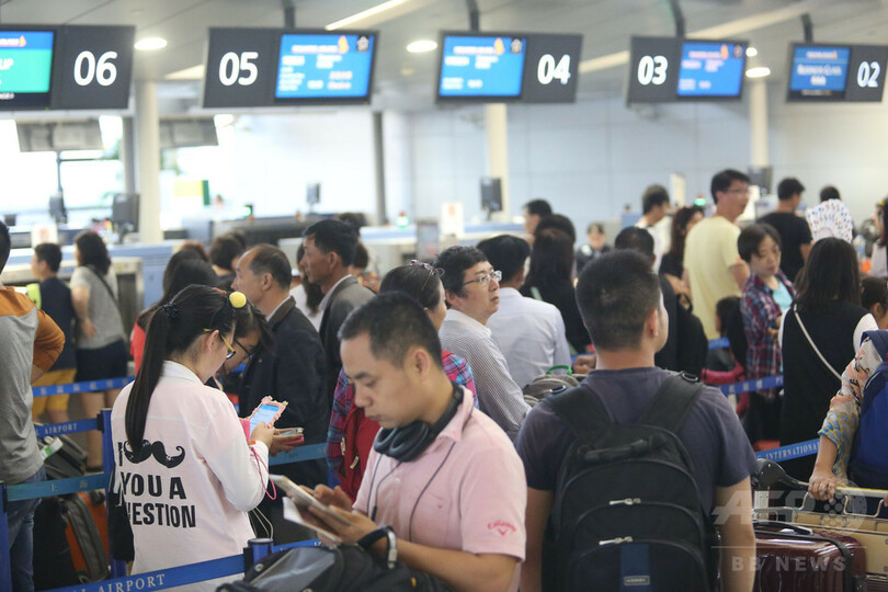 夏休みラッシュの幕が開いた。多くの学生旅行客のほかにも、家族旅行、友達同士の旅行客なども相次ぐ。出国ラッシュは7月下旬まで続き、8月下旬はUターンラッシュのピークになると予測している。(c)CNS/JCM/AFPBB News