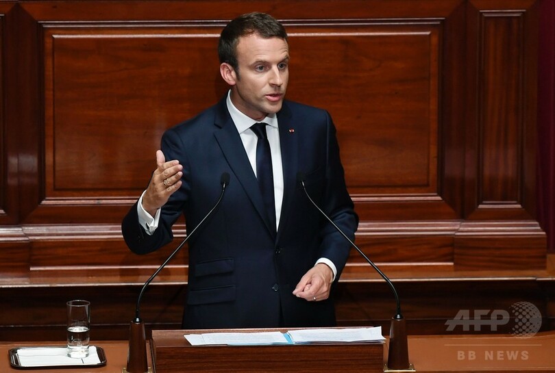 【7月4日 AFP】フランスのエマニュエル・マクロン(Emmanuel Macron)大統領は3日、首都パリ(Paris)郊外のベルサイユ宮殿(Palace of Versailles)で就任後初となる上下両院合同会議を招集し、演説を行った。