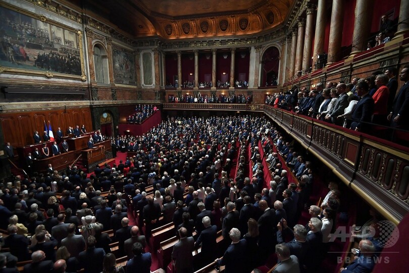 【7月4日 AFP】フランスのエマニュエル・マクロン(Emmanuel Macron)大統領は3日、首都パリ(Paris)郊外のベルサイユ宮殿(Palace of Versailles)で就任後初となる上下両院合同会議を招集し、演説を行った。