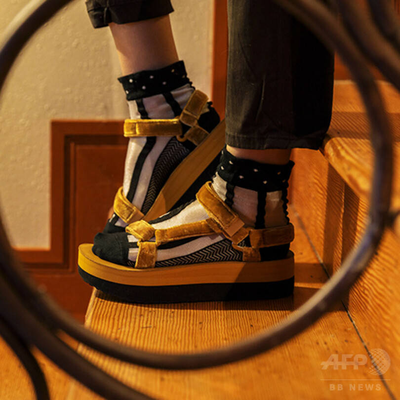 もうチェックした?「テバ」ベルベット素材のプラットフォームサンダル