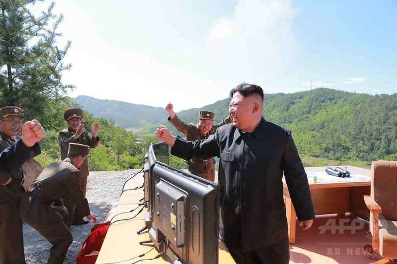 この報道では、金正恩(キム・ジョンウン、Kim Jong-Un)朝鮮労働党委員長が発射実験を見守ったとし、握りしめたこぶしを上げ、側近たちとたたえあう金委員長の画像や、実験を命ずる3日付の直筆の指令書の画像も放映された。指令書には「党中央部はICBMの実験発射を承認する。実験は7月4日午前9時に実施される」と書かれていた。発射は予定通り正確な時刻に行われたとみられる。(c)AFP