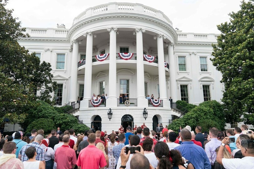 トランプ大統領は集会で「あなた方の音楽はこれまでに存在したどんな言葉よりも雄弁にわが国の英雄をたたえるものだ」と称賛した。