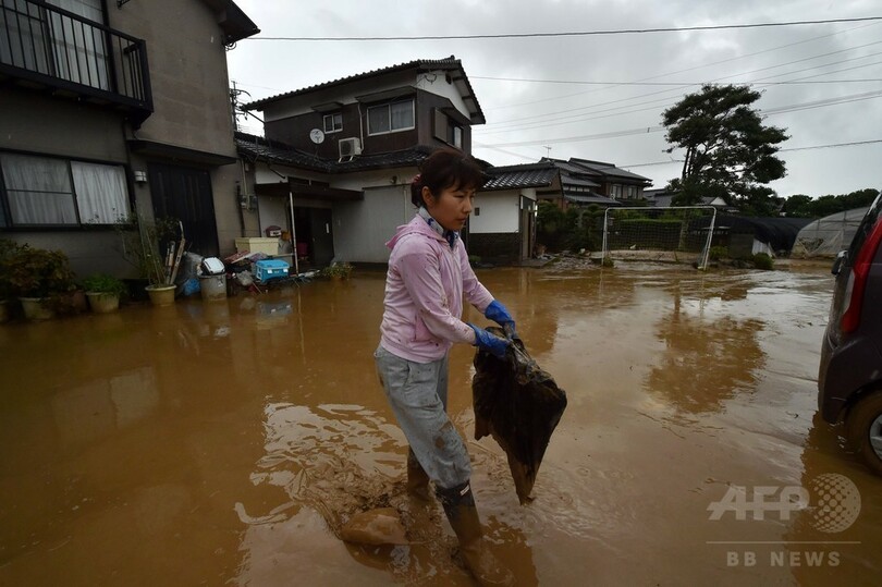 【7月6日 AFP】(写真追加)九州北部は5日、記録的な大雨に見舞われ、河川の氾濫や土砂災害で少なくとも2人が死亡、18人が行方不明となっている。気象庁は福岡県と大分県に大雨特別警報を発令し、「これまでに経験したことのないような大雨」で「重大な危険が差し迫った異常事態」だとして地域住民に避難と安全の確保を呼び掛けている。