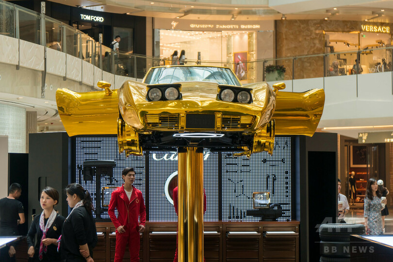 【7月10日 CNS】上海(Shanghai)の陸家嘴(Lujiazui)にある大型ショッピングモールの1階広場の空中に5日、黄金にまばゆく光る旧型のスポーツカーが現れた。周囲のガラスケースの中には、黄金の自動車部品も飾られ、買い物客の視線はその輝きに吸い寄せられていた。