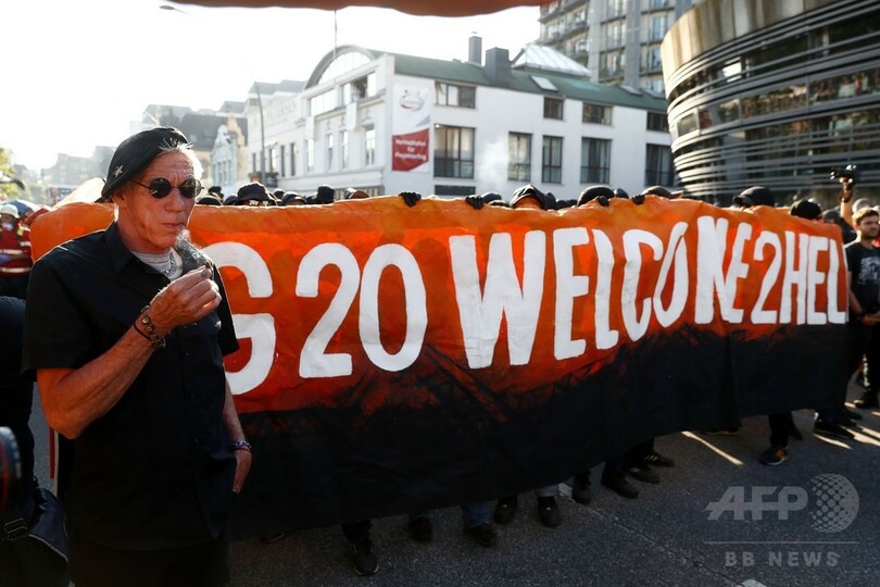 1万2000人のデモ隊は「G20をたたき潰せ!」や「地獄へようこそ」と書かれた横断幕を掲げ、午後7時(日本時間7日午前2時)に首脳会議の会場へ向けて行進を開始。だがデモ参加者約1000人が、黒いフードや覆面を取るよう求めた警察の指示に従わず、行進は開始直後に制止された。