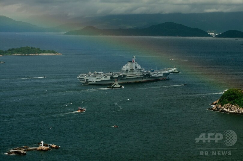 中国の空母「遼寧」が香港に寄港 軍事力を誇示