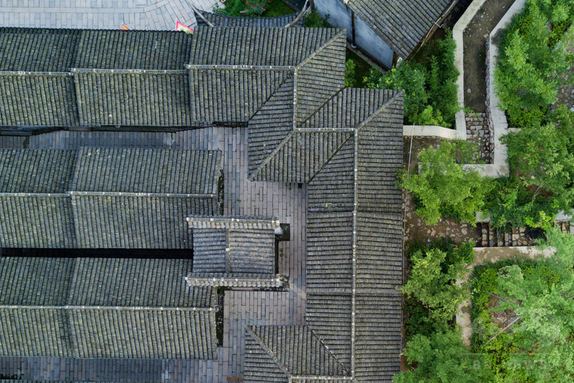 【7月13日 CNS】山林と町並みが互いに引立て合い、静寂な雰囲気を醸し出している集落。江蘇(Jiangsu)省 句容(Jurou)市 宝華山(Baohuashan)の麓にある「千華古村(Qianhuai Gucun)」を4日、上空から撮影した。