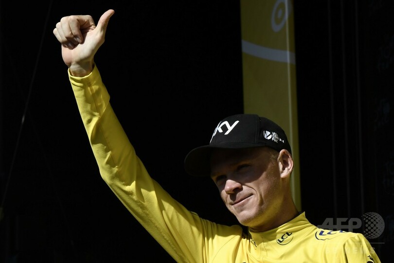 総合争いではフルームのチームメートのゲラント・トーマス(Geraint Thomas、英国)が12秒差の2位をキープし、アスタナ(Astana Pro Team)のファビオ・アール(Fabio Aru、イタリア)がフルームと14秒差の3位につけている。(c)AFP/Barnaby CHESTERMAN