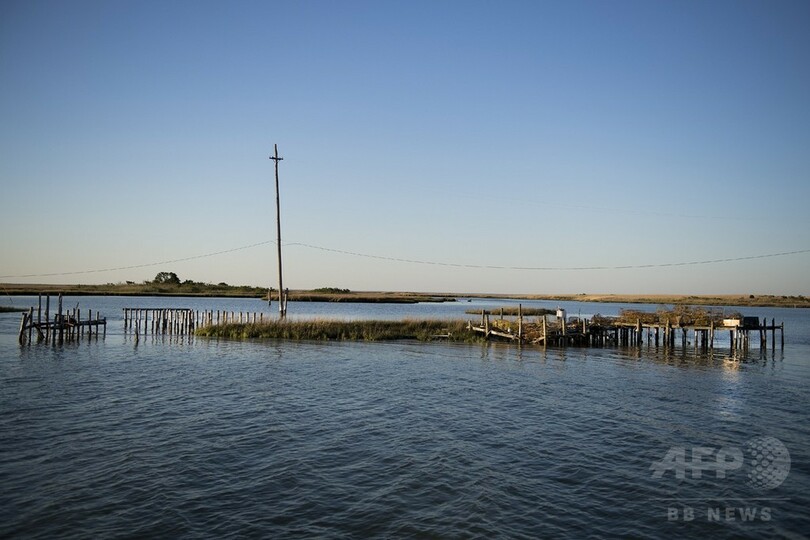 【7月12日 AFP】米バージニア(Virginia)州の消えゆくタンジール(Tangier)島の写真を撮るのは、いろんな意味で奇妙な経験だった。タンジール島は米東海岸のチェサピーク湾(Chesapeake Bay)の中へ徐々に沈んでいるが、500人近い住民の中で、気候変動を信じている人はほとんどいない。社会的な側面もある。男女の役割が厳しく決められていて、ちょっと1950年代に逆戻りしたような感じだ。それから言葉だ。