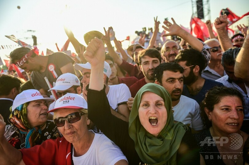 正義の行進は、CHPの議員が不当に逮捕されたとしてケマル・クルチダオール(Kemal Kilicdaroglu)党首が6月15日に開始。昨年7月15日のクーデター未遂後に発令された非常事態宣言下での弾圧などに不満を募らせる人を巻き込み、一気に規模が膨らんだ。エルドアン氏の支配に対する抗議活動としては、2013年5~6月にイスタンブールで行われたデモ以降では群を抜いて規模の大きいものとなった。